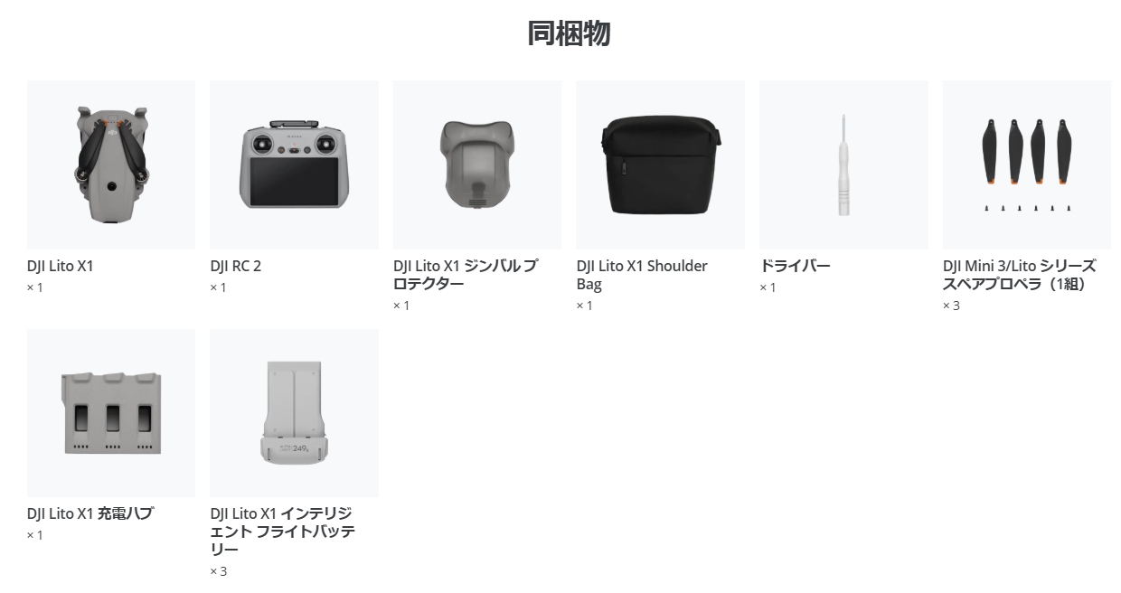 全方向障害物検知 と前向きLiDARで、安心・安全な飛行 アクティブトラック で、シネマティックな映像を手軽に撮影 1/1.3インチ センサーで、プロレベルの映像品質 249 g以下 、軽量設計&優れた携帯性 バッテリー長時間駆動 で、たっぷり飛行を楽しめる スムーズで安定した15 km映像伝送 ディスプレイ付きDJI RC 2送信機、インテリジェント フライトバッテリー3個、充電ハブ、ショルダーバ ッグなどが付属しています。