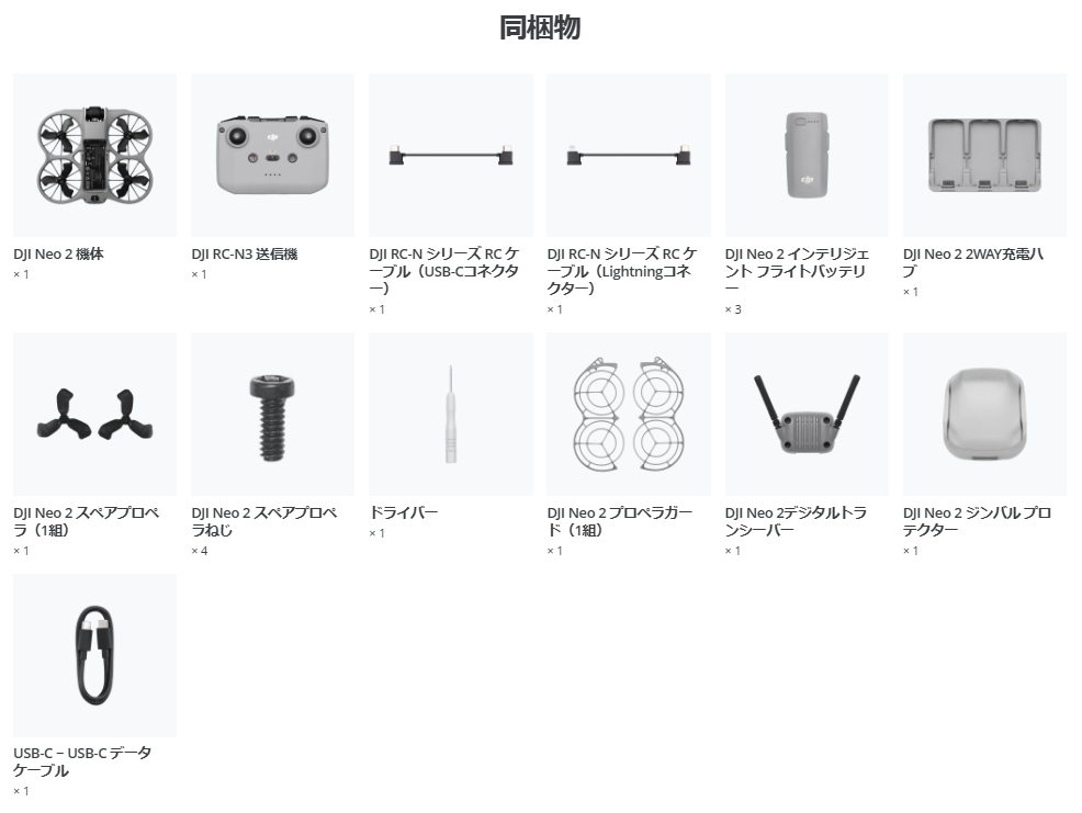 ドローン本体に加え、RC-N3、デジタルトランシーバー、バッテリー3個、充電ハブ、プロペラガードが含まれており、ライブ動画と高い操作応答性を実現します。