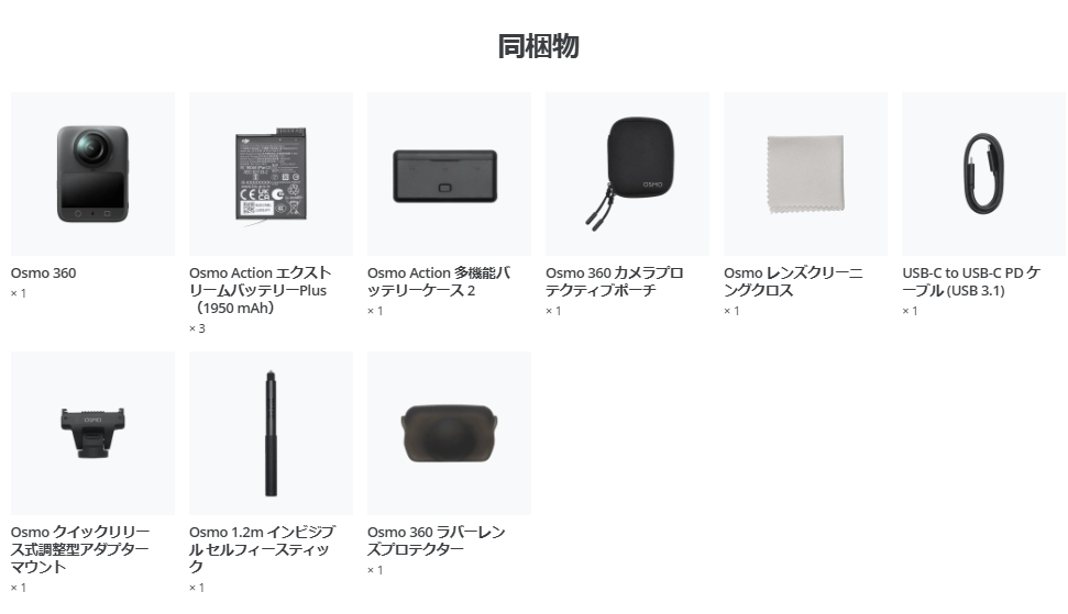 さらに1.2mインピジブルセルフィースティック、2つのエクストリームバッテリーPlus(1950mAh)、多機能バッテリーケース2などを含みます。