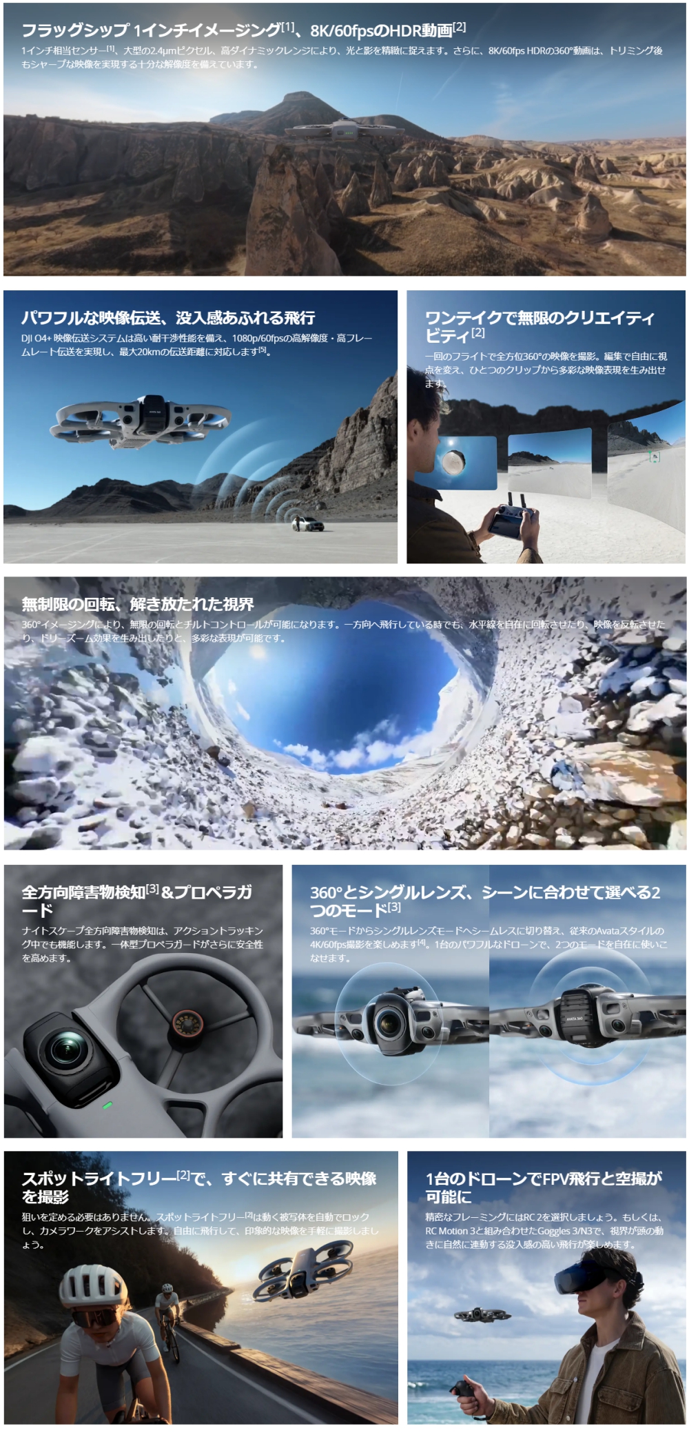 1台のドローンでFPV飛行と空撮が可能に360°とシングルレンズ、シーンに合わせて選べる2つのモード